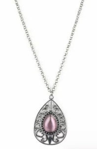 Get Pink Moonstone Necklace Paparazzi Background. Sold as one individual necklace. The dramatic pendant swings from the bottom of a lengthened silver chain for a whimsical finish.