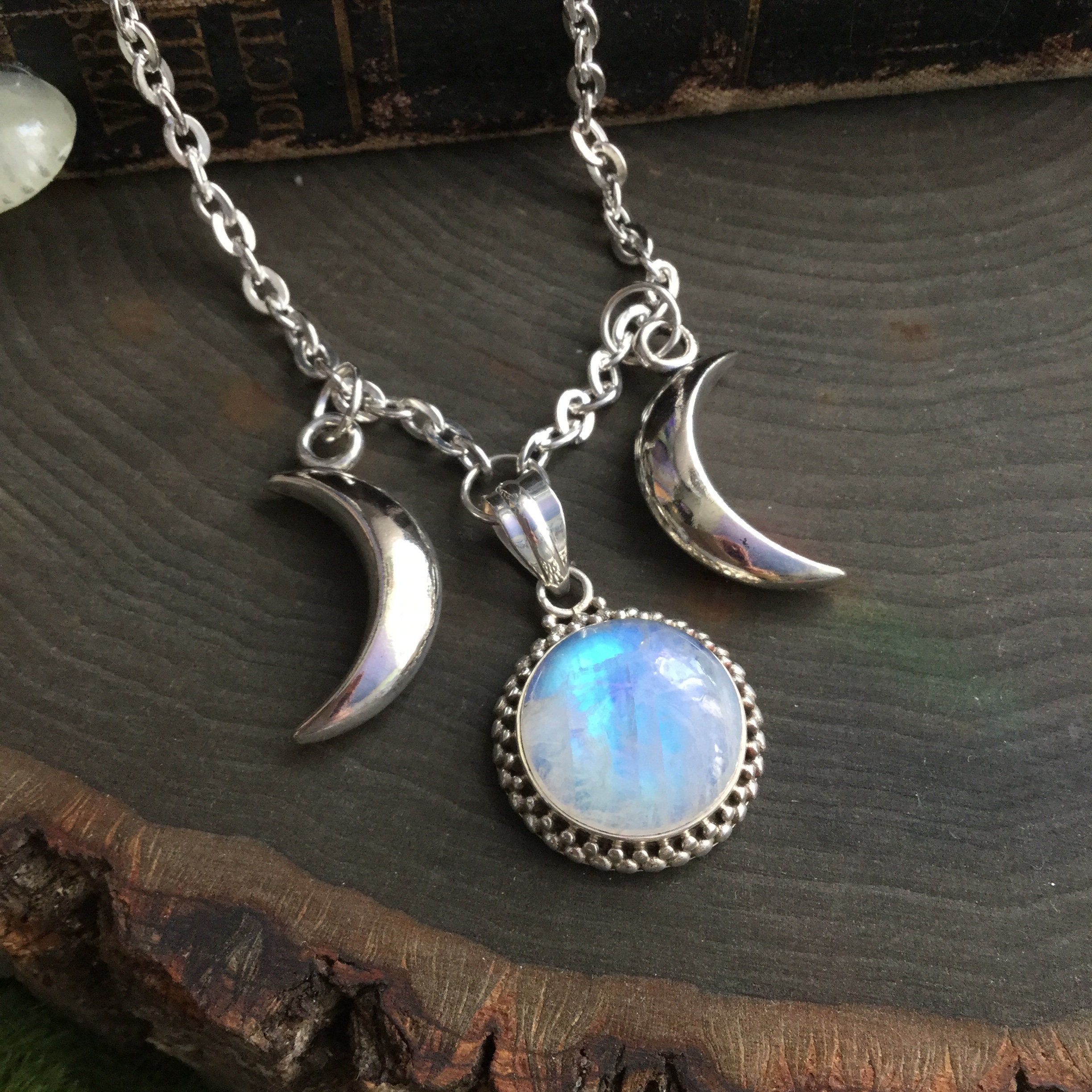 Moon Necklace, Triple Moon Pendant, Goddess Pendant, Celtic Jewelry, Anniversary Gift, Celestial ... from i.etsystatic.com Stone love mediation bracelet moon earrings moon goddess moon ritual moon stud earrings moonstone moonstone beads moonstone bottle moonstone bracelet moonstone chips moonstone crystal moonstone earrings moonstone heart moonstone jewelry moonstone necklace. Dandelion make a wish sphere necklace. Moonstone for love, divination, psychism, sleep, gardening, protection, youth and dieting.