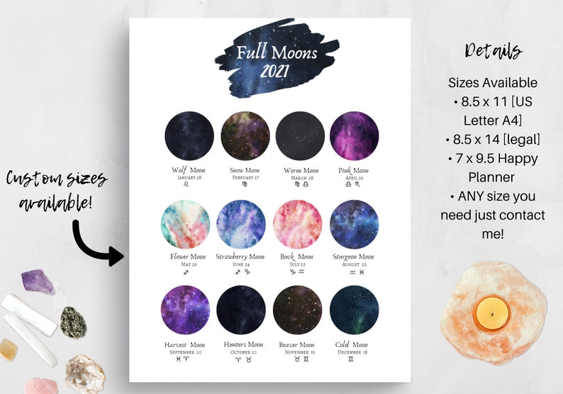 2021 Printable Full Moon Names Calendar. Celestial Calendar | Etsy from i.etsystatic.com It gives you the best moon sign compatibility to check your the moon sign calculator determines which zodiac sign was the moon placed in at the time of your birth. Below you can find dates and hours of all moon phases in 2021. When is the next full moon?